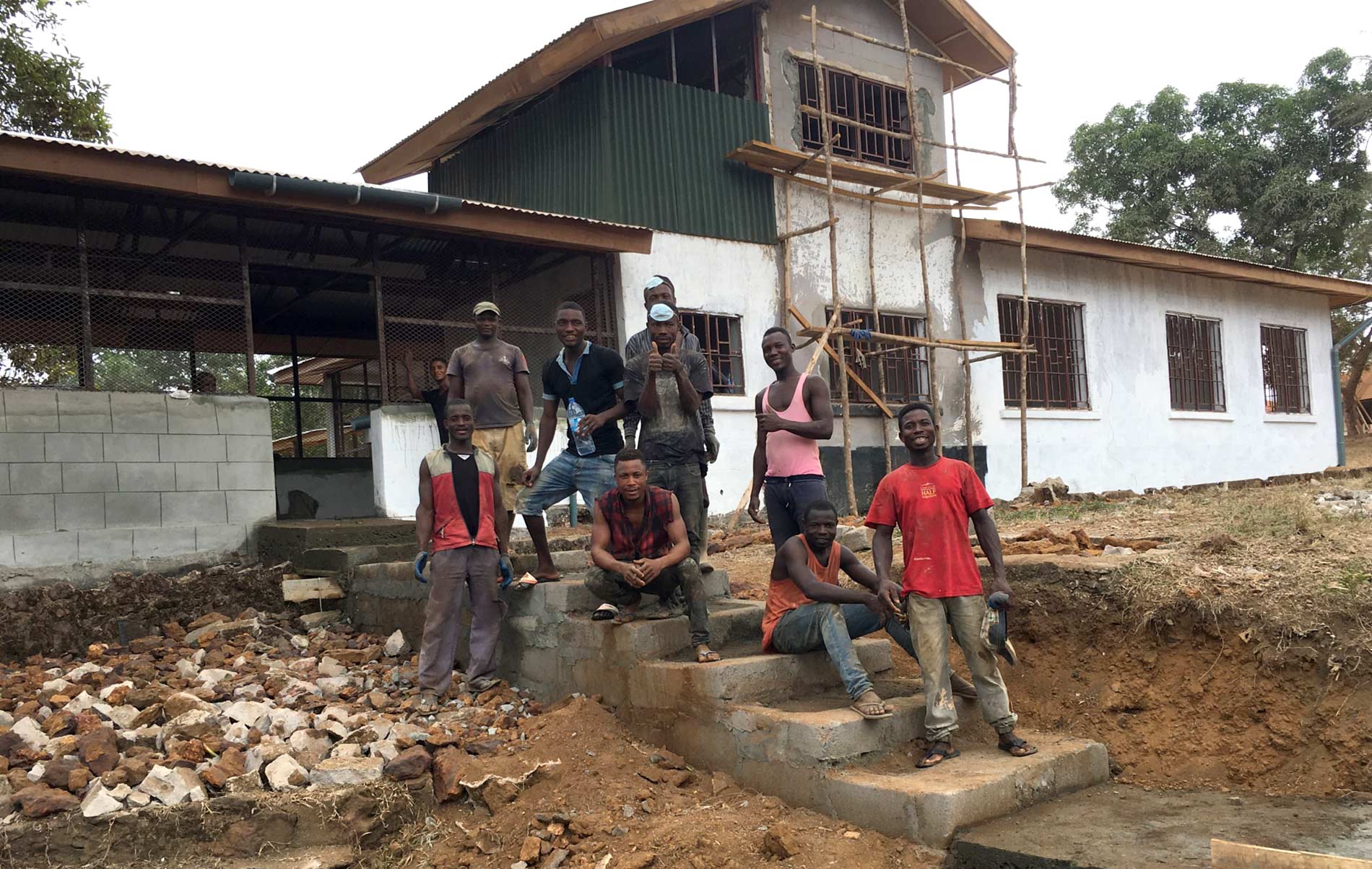 Today, the sanitation portion of the project is complete, as is the refurbishment of The International House to serve as much needed staff housing. Housing is challenging in Mattru Jong, and having an on site residence will go a long way to retain staff. The above depicts Mattru Jong locals putting in the hard work preparing the vital staff housing.